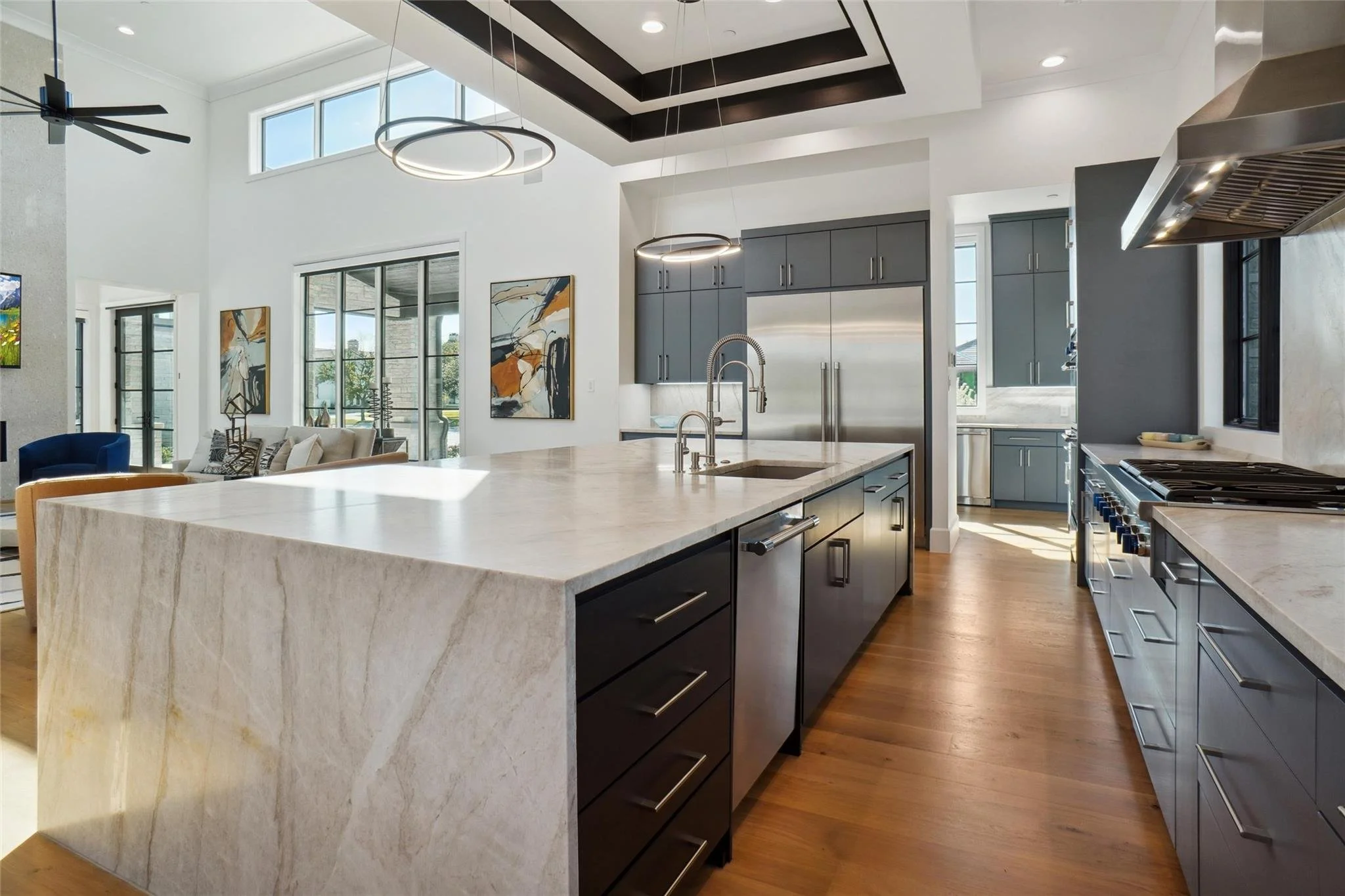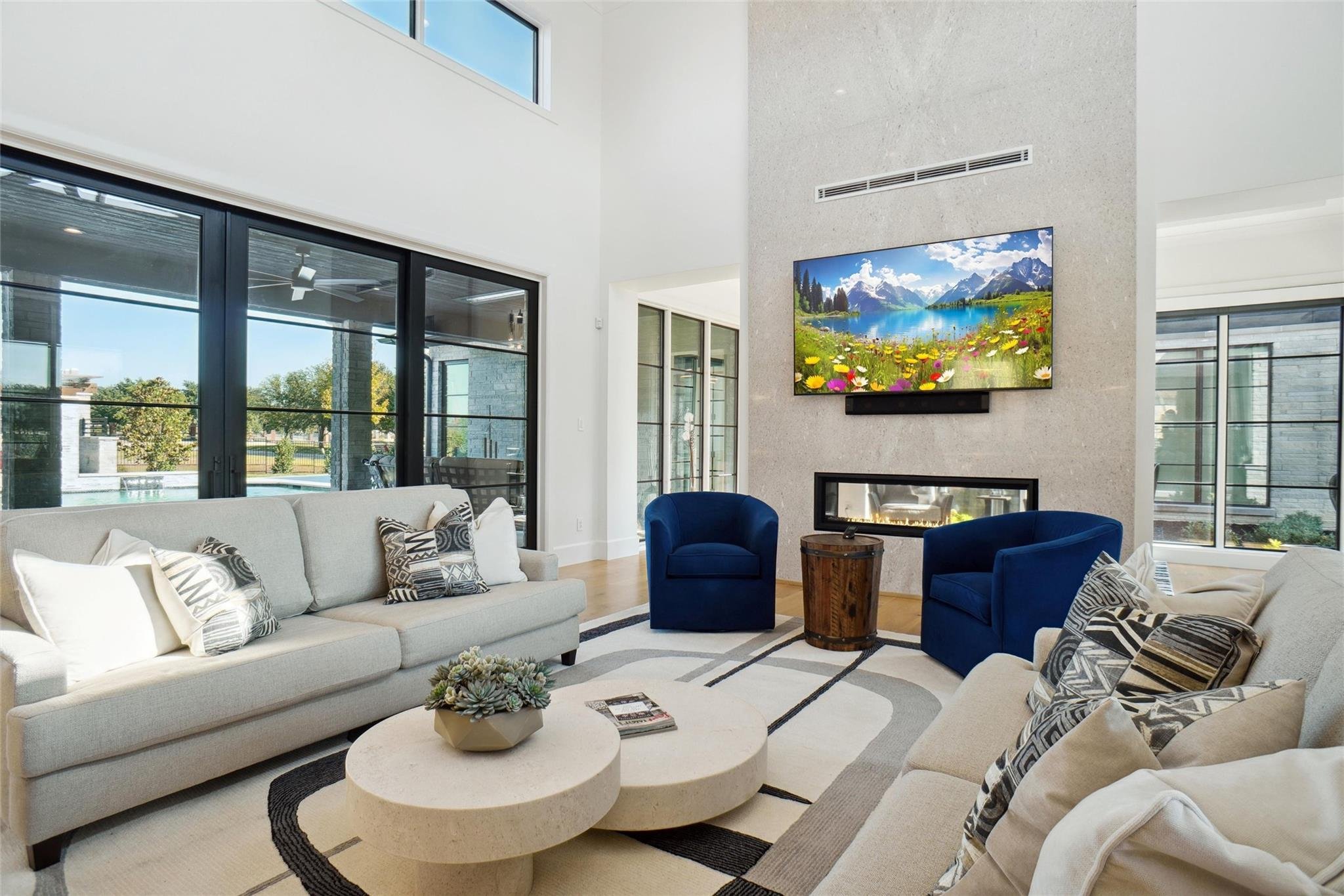 Nestled in the serene suburbs of Colleyville, this luxurious home exudes elegance and comfort. Featuring a grand entrance with soaring ceilings and a stunning chandelier, the spacious open floor plan seamlessly connects the gourmet kitchen, dining area, and expansive living room, perfect for entertaining. High-end finishes, including hardwood floors and custom cabinetry, adorn every inch of the space. The master suite offers a private oasis with a spa-like en-suite bathroom, complete with a soaking tub and walk-in shower. Outside, the meticulously landscaped yard boasts a sparkling pool and a covered patio, ideal for alfresco dining and relaxation. This exquisite residence embodies modern luxury while providing a warm, inviting atmosphere.
